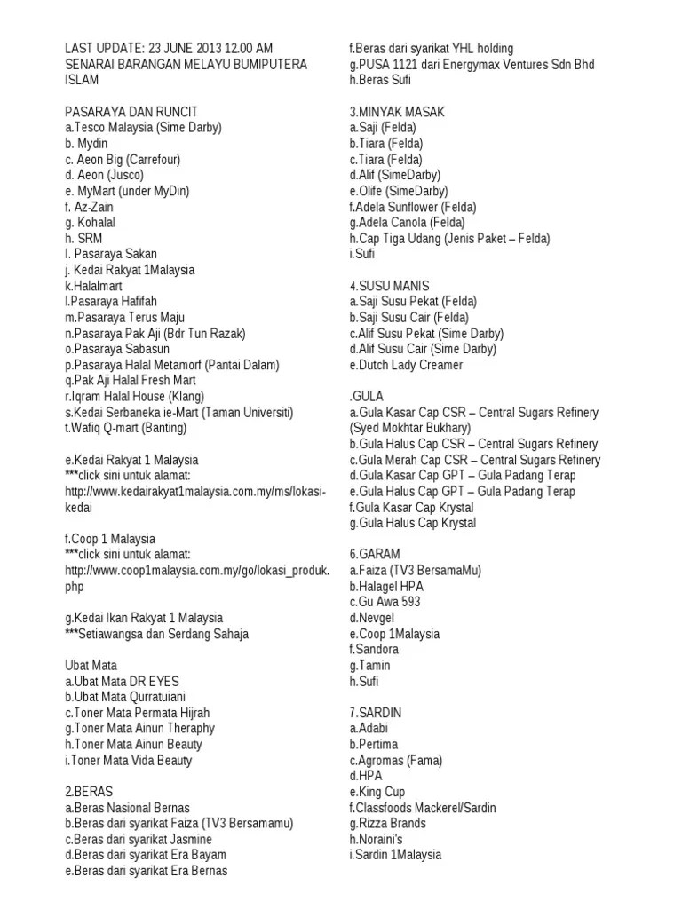 Minyak masak syed 1kg keluaran bumiputera islam lazada. Disini adalah senarai minyak masak keluaran syarikat muslim untuk rujukan semua. 1.seri murni dap 2.buruh dap 3.vesawit dap 4.vesoya dap Delima oil products sdn bhd (dop), pengeluar minyak masak terkemuka memperkenalkan minyak masak terbaharunya, adela gold, . Senarai produk halal keluaran bumiputera islam (senarai terkini).